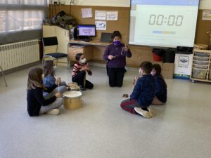 En aquest segon trimestre hem treballat els continguts de música i dansa a través de la interpretació, l’audició i creació de música. Hem seguit amb el treball de la veu fent repàs de les cançons del concert d’hivern.