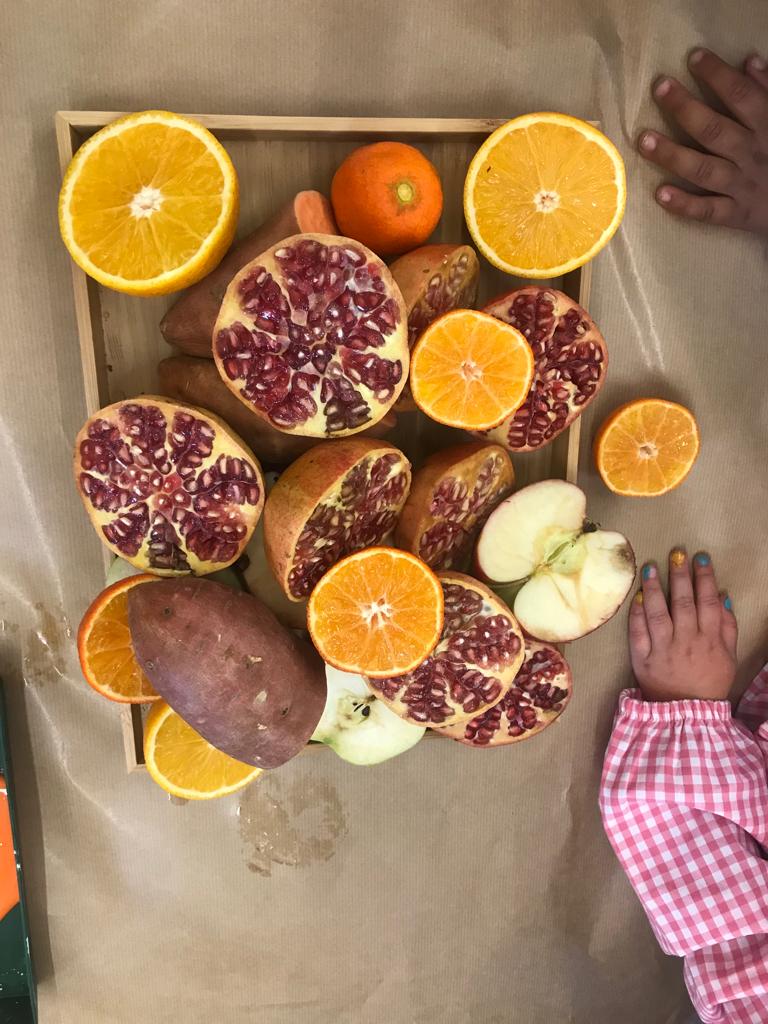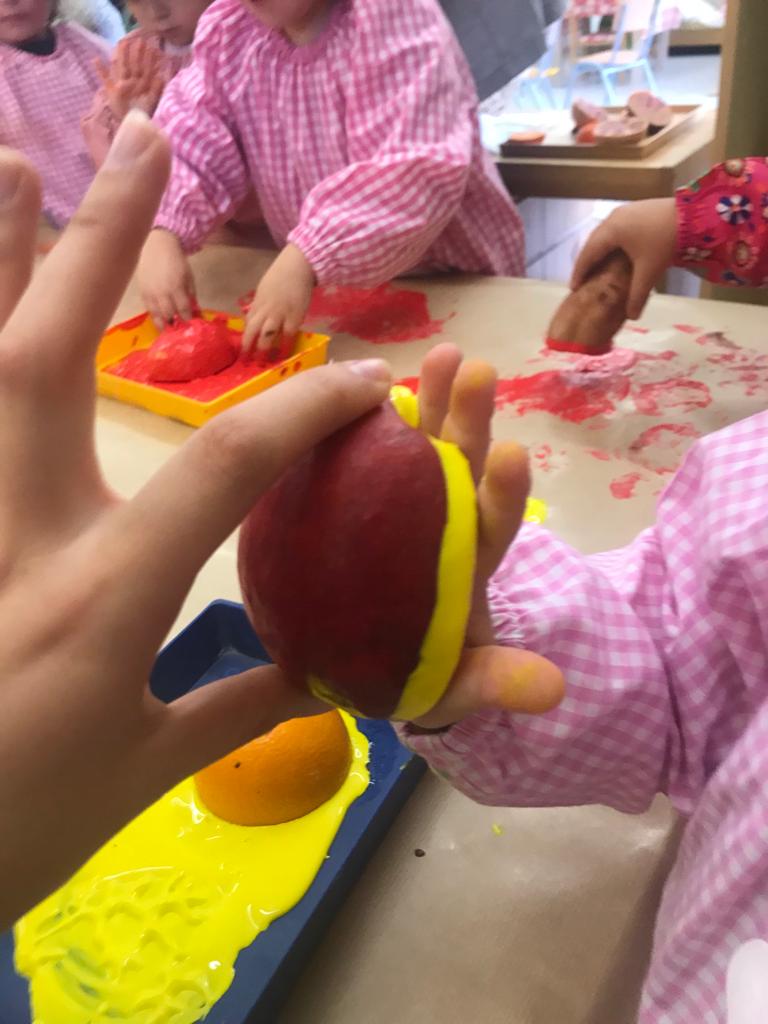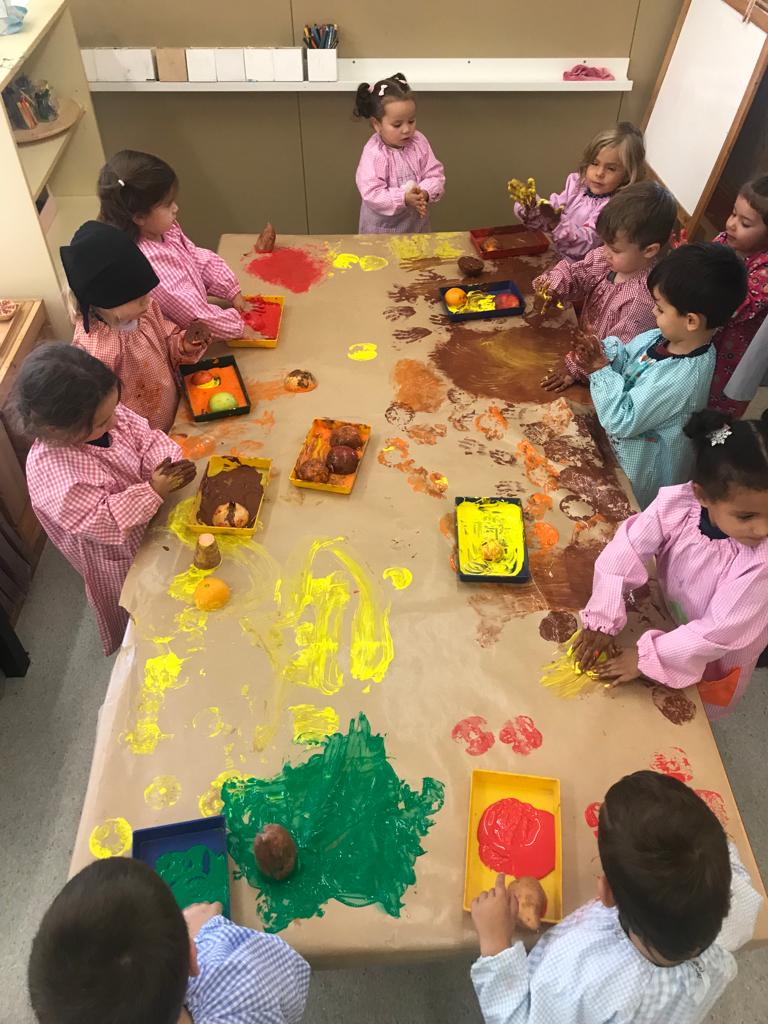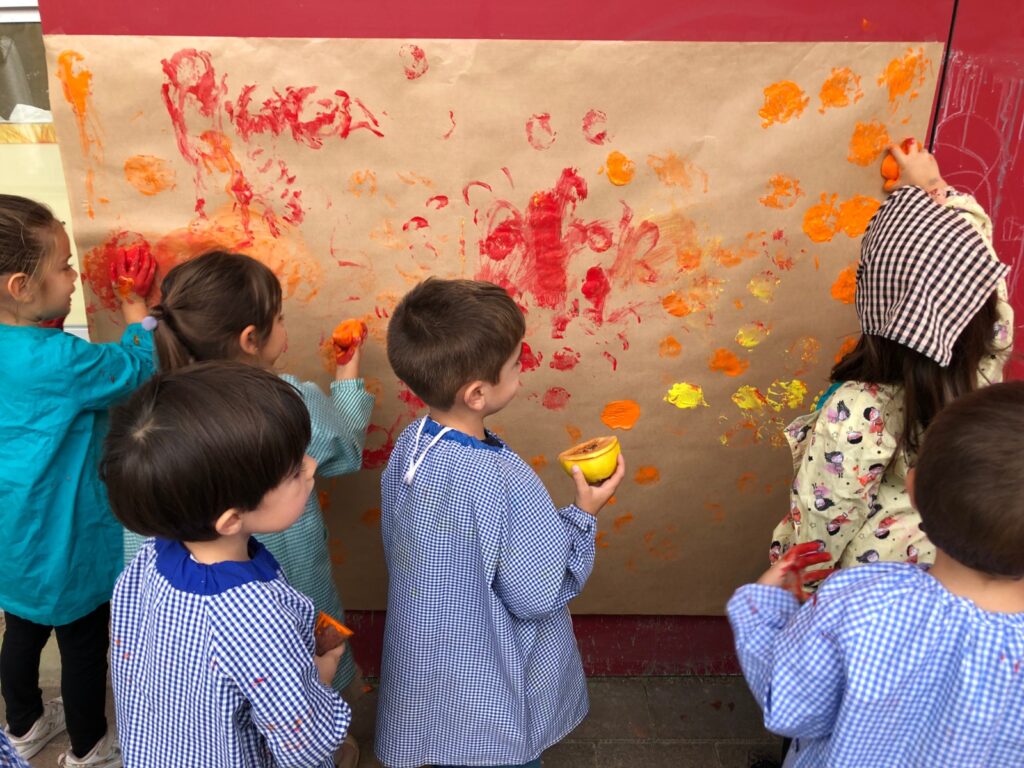 A la tarda, la comunitat de petits han realitzat una estampació de fruits de la tardor com per exemple magranes, moniatos, taronges, etc.