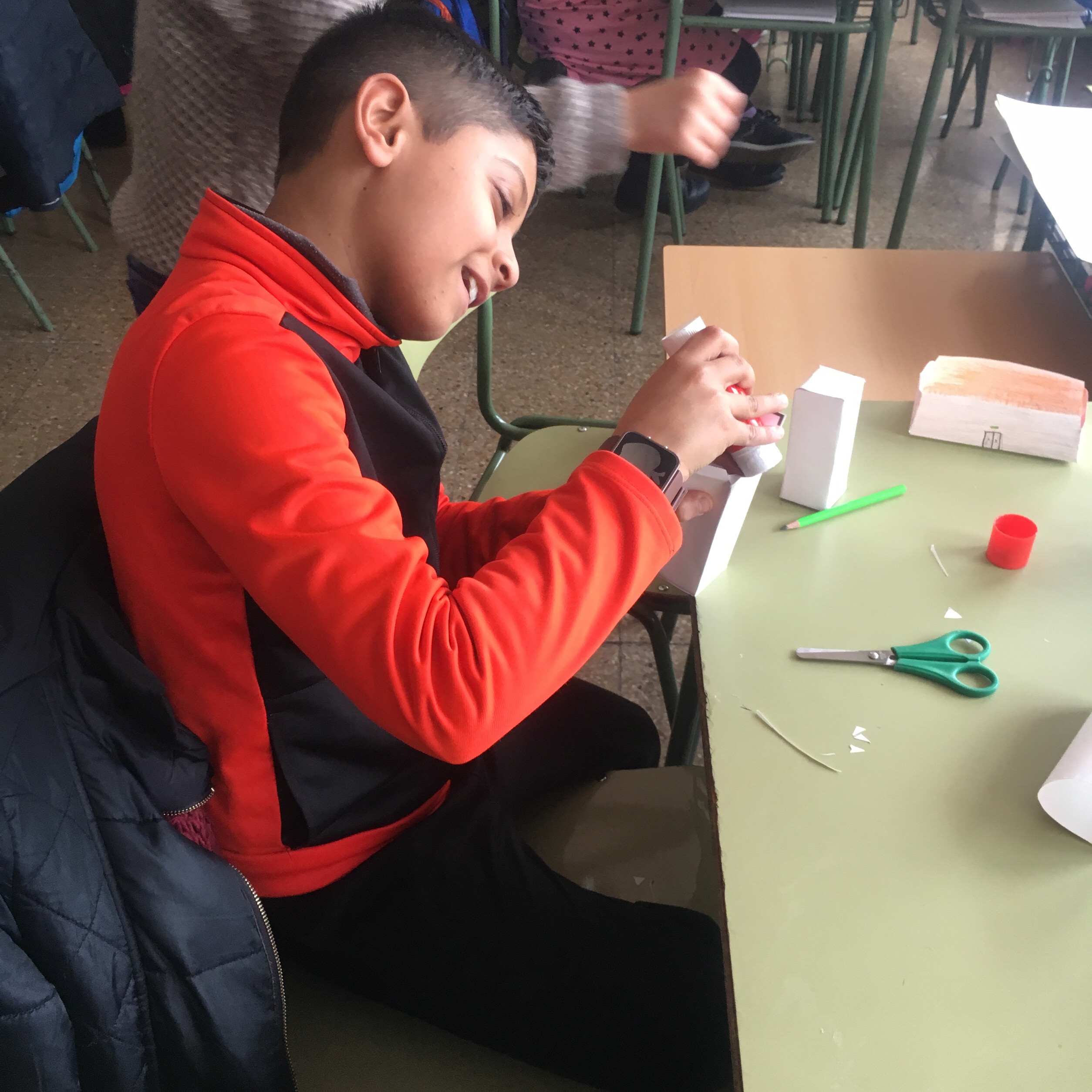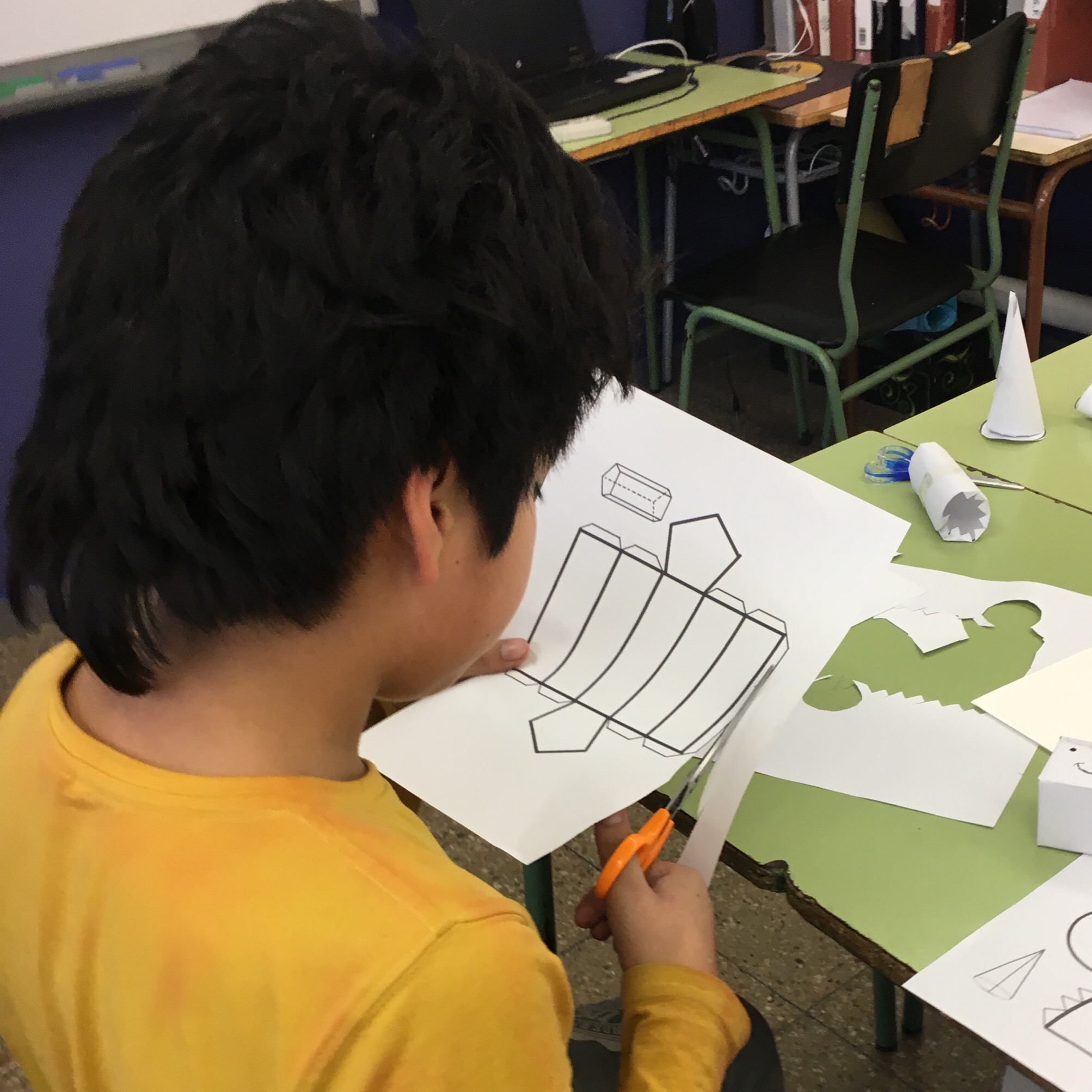 Així, ens vam posar a treballar, vam fer 4 grups a la classe i vam fer un petit esborrany en paper de la nostra ciutat. Una vegada ja teníem la idea, la mestra ens va donar plantilles de diferents cossos geomètrics i ens vam posar a construir-les!! I… quina feinada!!