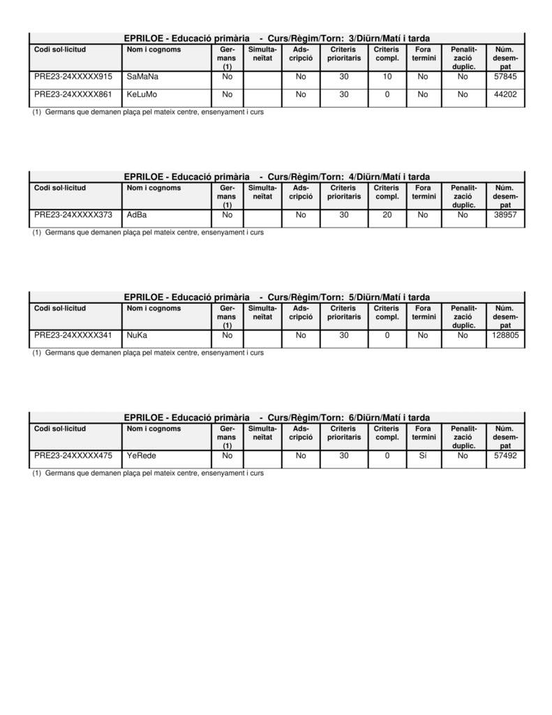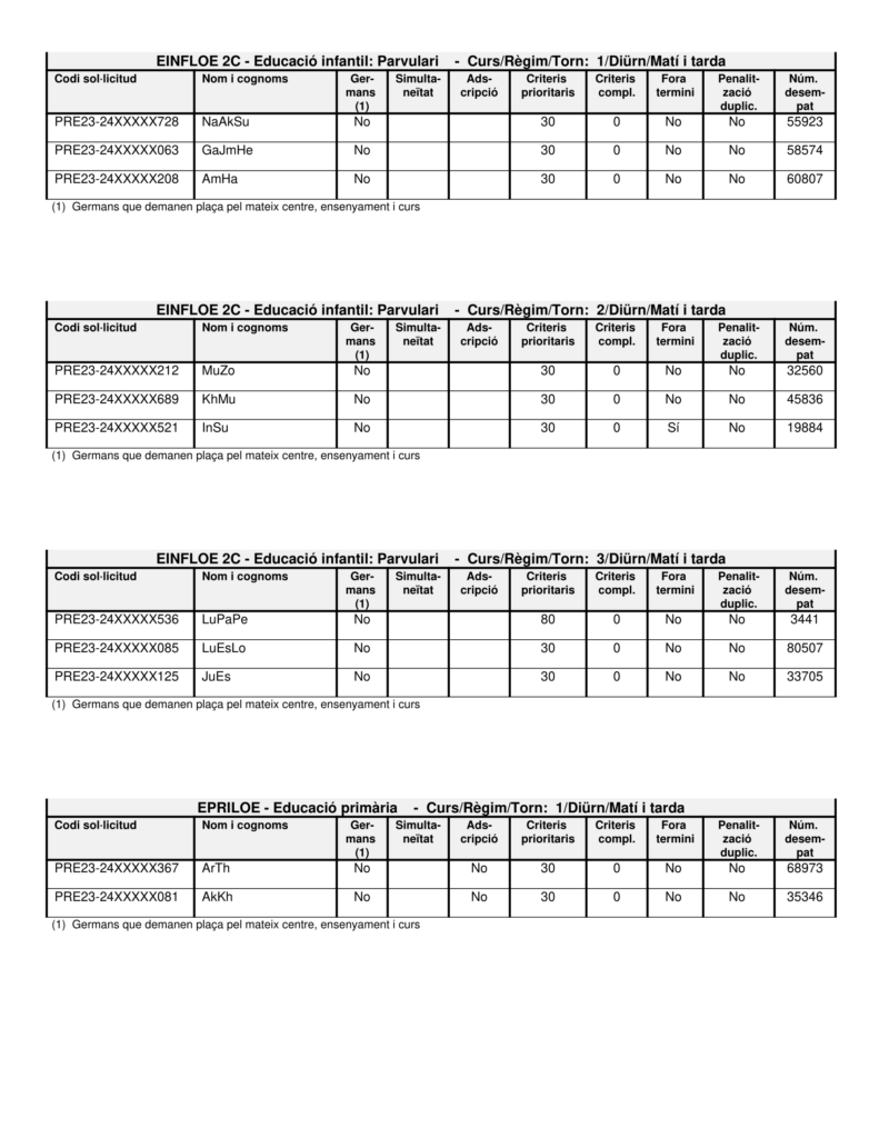 Llista de sol·licituds que han demanat el centre i l’ensenyament en primera petició ordenada a 11/05/2023