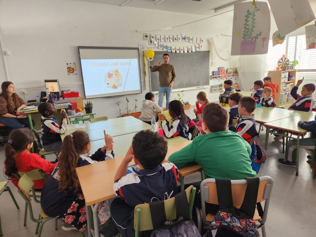 El dijous 30 de març van vindre estudiants de nutrició de la Universitat Rovira i Virgili a explicar a l’alumnat de Cicle Inicial què aliments són adequats per als nostres esmorzar. Vam investigar quins esmorzar portem, si són adequats o no, i a més vam descobrir amb un joc, quins són els més bons! Amb