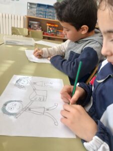 Dibuixem el logotip de l’escola en forma de ninots.