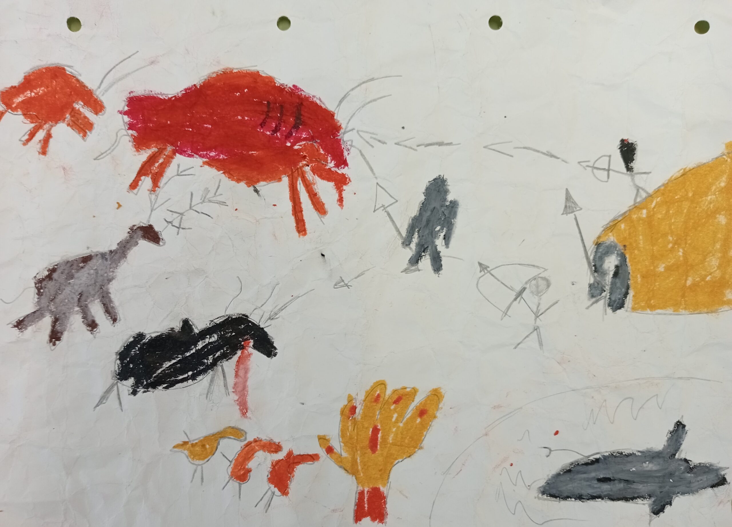 Els nens i les nenes de 3r B hem estat gaudint amb les pintures rupestres i, amb tot el què hem après, hem pogut crear-ne una de pròpia amb les tècniques treballades a l’aula.