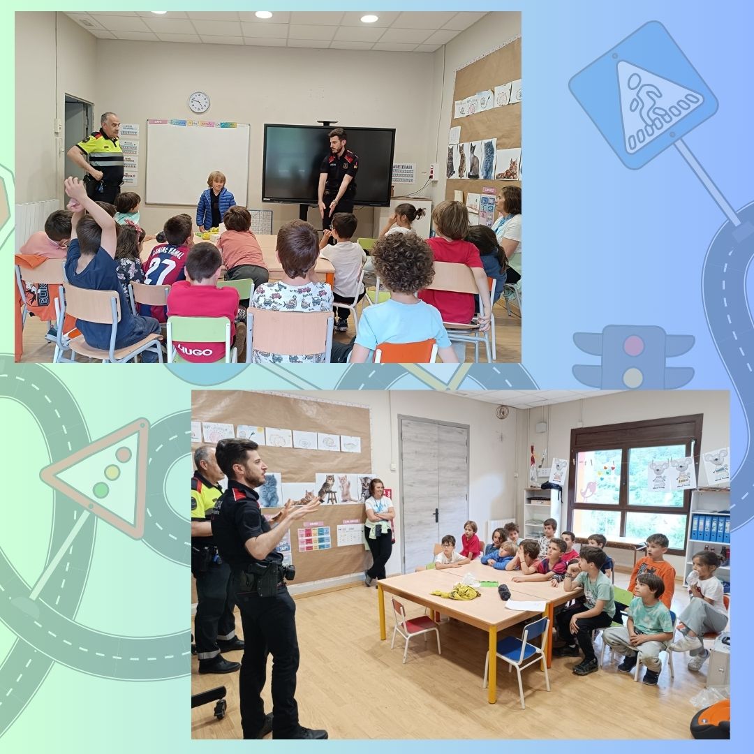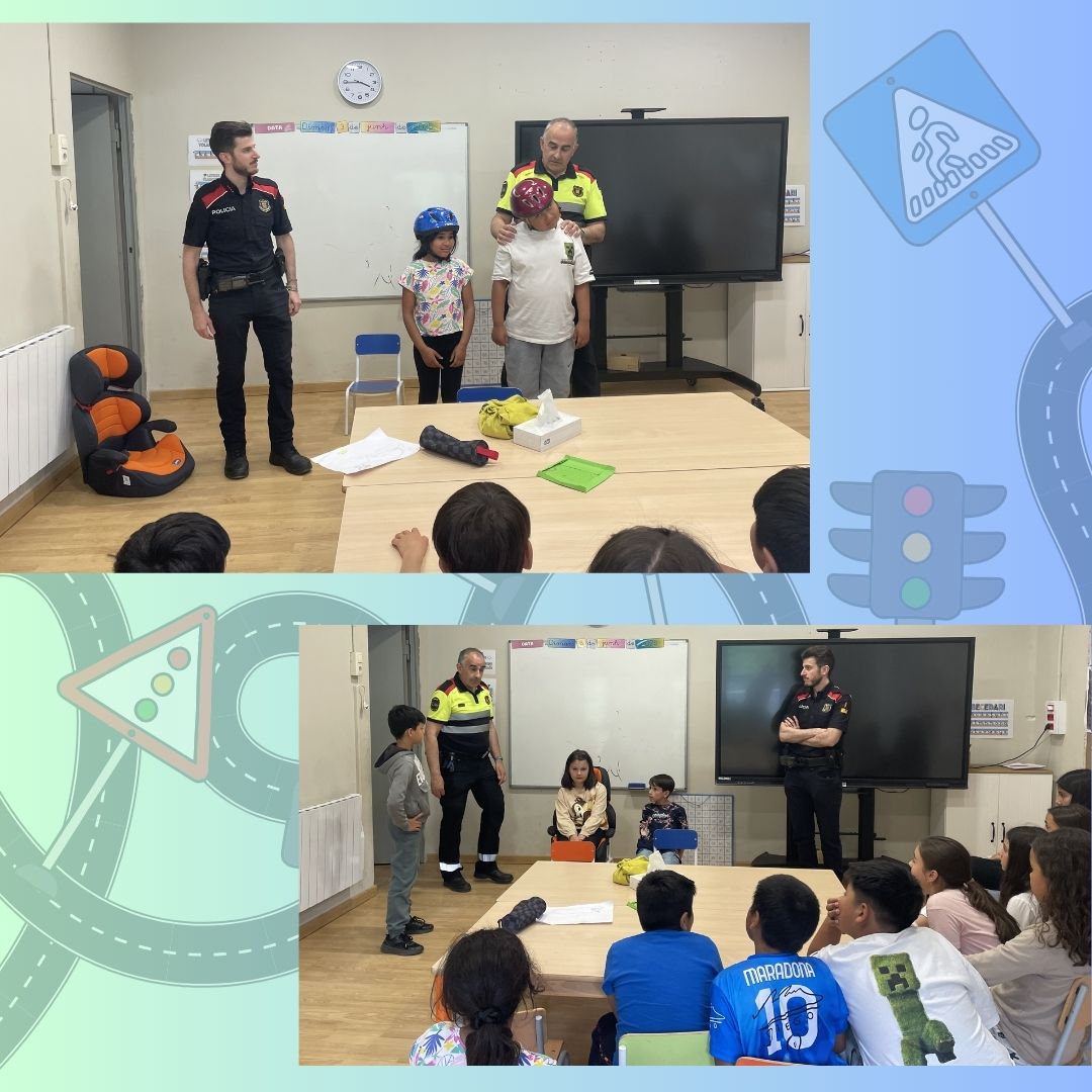 Aguest mes, auem participat ena activitat qu’organize eth; “Servei Català de Trànsit” amassa tamb es Mossos d’Esquadra, entà promòir era importància dera seguretat viària ar escolanat de Cicle Iniciau e Cicle Miei . Ath long dera session, es agents mos expliquèren eth besonh d’anar ben equipadi quan vam tamb era bicicleta: portar casc, ròba avienta e elements de visibilitat. Tanben mos rebrembèren qu’ei fonamentau respectar es normes de circulacion, tant en bicicleta coma quan vam en coche damb es pairs.