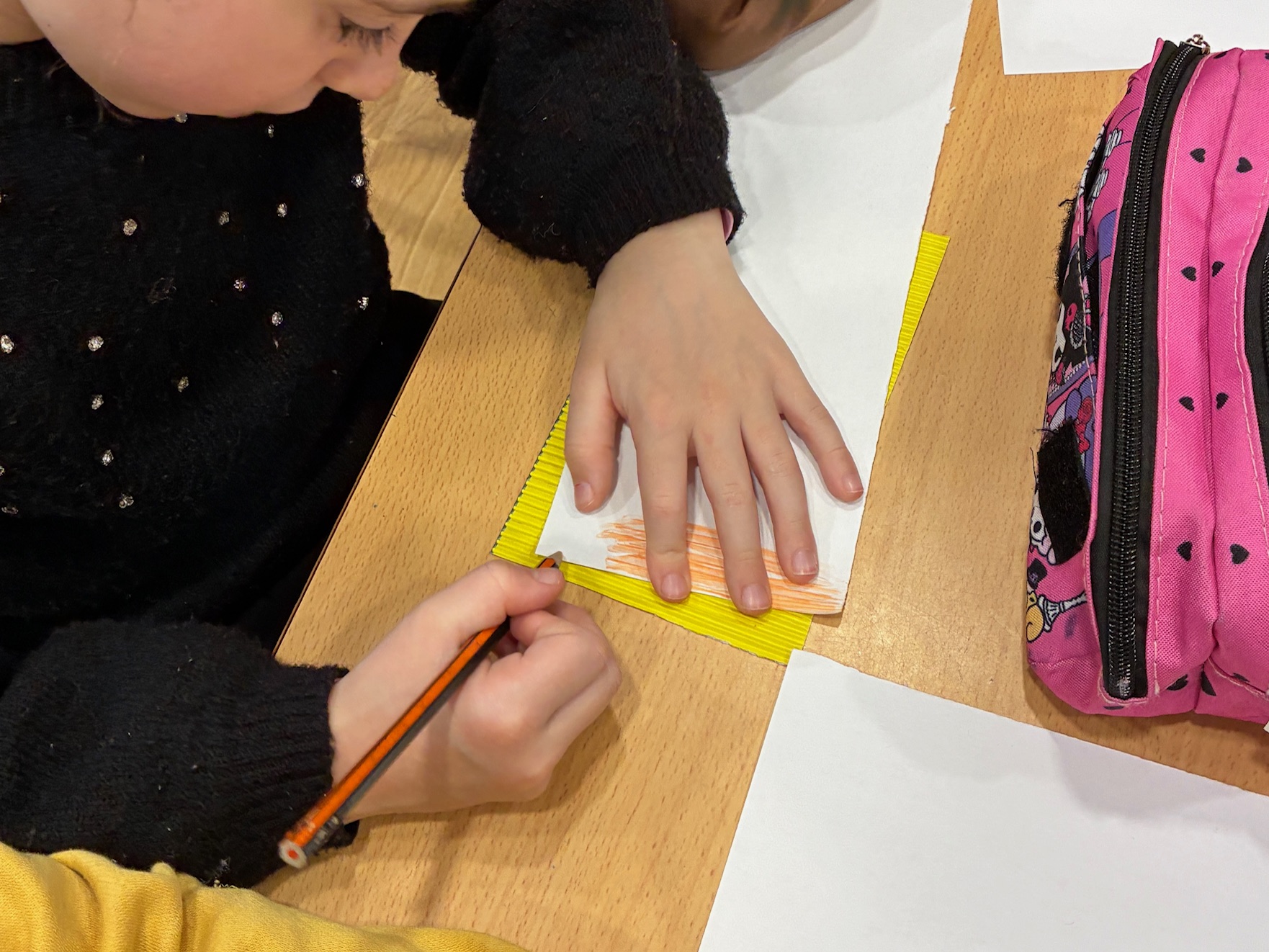Ena prumèra session, eth dia 9 de gèr de 2026, trabalhèrem es 7 leis der art: linha, forma, volum, valor, textura e espaci. Damb diuèrsi exercicis podèrem aquerir es diferents concèptes, en tot crear ua òbra finau e collectiva.