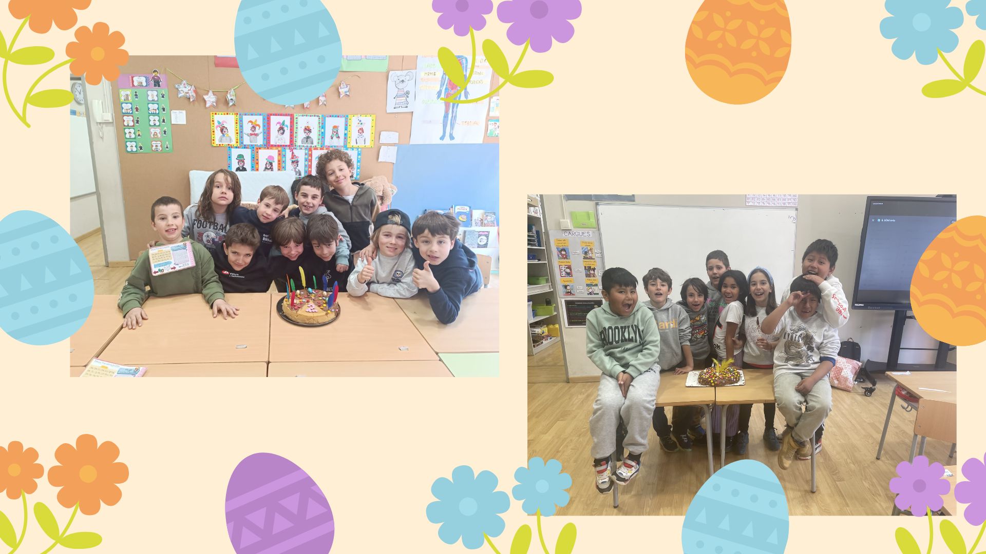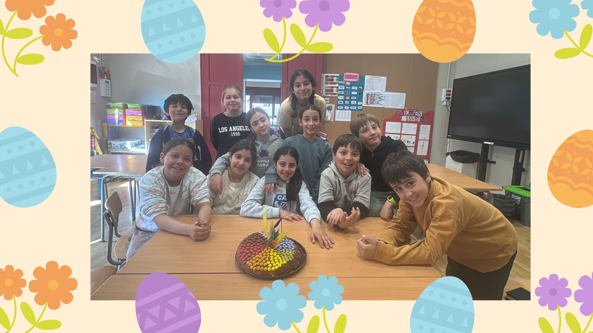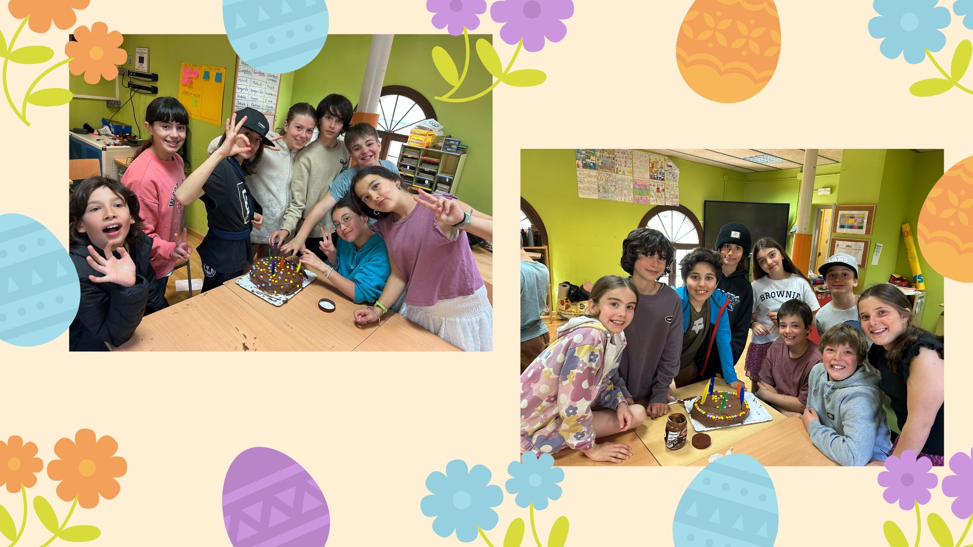 Peth maitin, en acabar d’esdejoar comencèren a hèr es mones de Pasca. Per grops, les farciren de chicolate e les decorèren.
