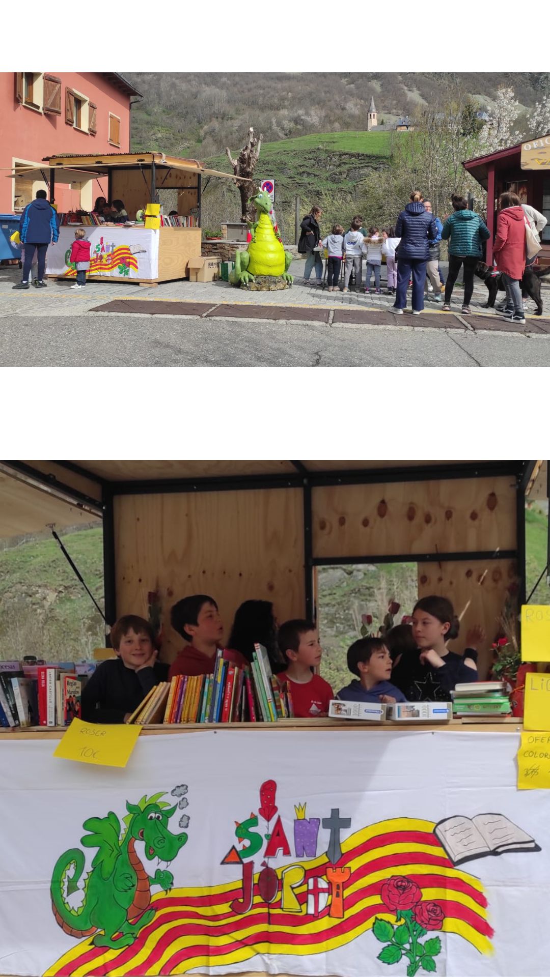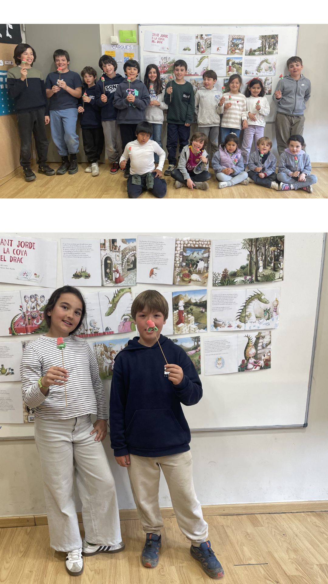 Eth 23 d’abriu celebrèrem Sant Jòrdi ena escòla, siguec un maitin a on er escolanat gaudic  de diuèrses activitats restacades damb aguesta festivitat. Ath long deth dia, escotèren desparières versions des condes dera legenda de Sant Jòrdi, realizèren manualitats e escotèren ua petita representacion teatrau.