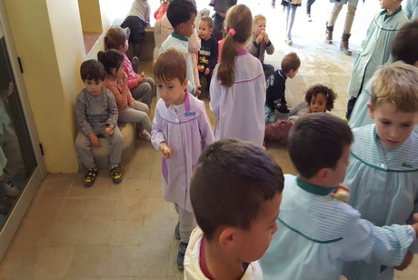 Els alumnes de P4 i de P5 han fet panellets i han portat una carta a P3 per convidar-nos a tastar-los a la tarda.