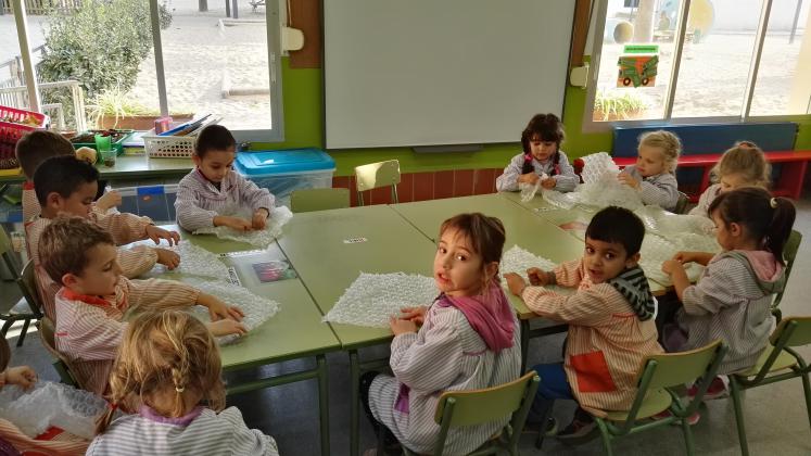 L’Àngel ens ha portat uns plàstics molt grans que tenien unes bombolletes d’aire  a dins i ….. els hem fet petar amb la pinça dels nostres dits. Uauuuu, quin soroll i que divertit que ha sigut.
