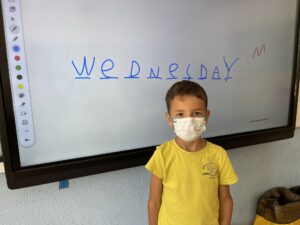 A més a més també juguem amb la pissarra digital per recordar com s’escriuen els números o veure el temps que fa.