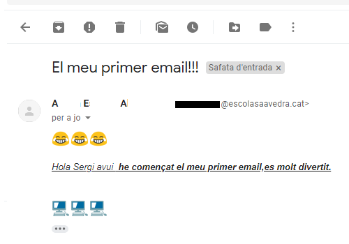 Que content/a que està aquest/a alumne/a d’inicials A.E.A. per haver estat capaç d’enviar un missatge en format de correu electrònic al seu mestre.