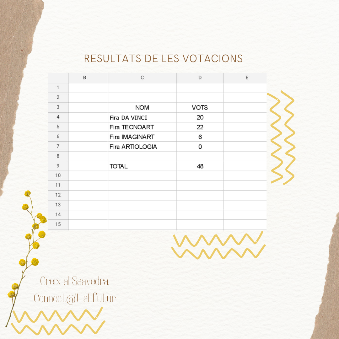 Fira TecnoArt ha estat l’opció més votada. Com podeu veure, els resultats de les votacions han estat molt ajustats! Agraïm a totes les persones que han participat. Moltes gràcies.