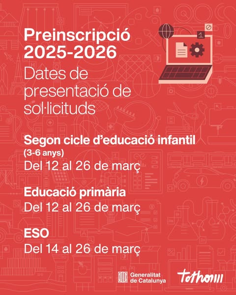 Passejada pel Sagarra. Inscriu-te en el codi QR, o clicant aquí. Dimarts 17 de Febrer, comencem a les 09:30h. Dimarts 24 de Febrer, comencem a les 15:00h. A la visita, podràs conèixer el projecte Sagarra. Sessions informatives a les famílies amb fills i filles que iniciaran l’escolaritat el Curs 2026-2027 Dates preinscripció En les pròximes […]