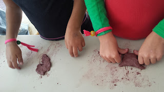 Els mes petits observant la Nora treballant.