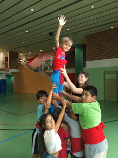 L’alumnat de P5 descobreix els castellers i practiquen a les espatlleres.