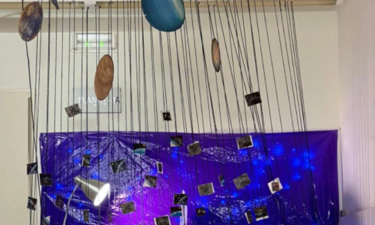 Instal·lació artística a l’escola dedicada al MACBA. Foto cedida