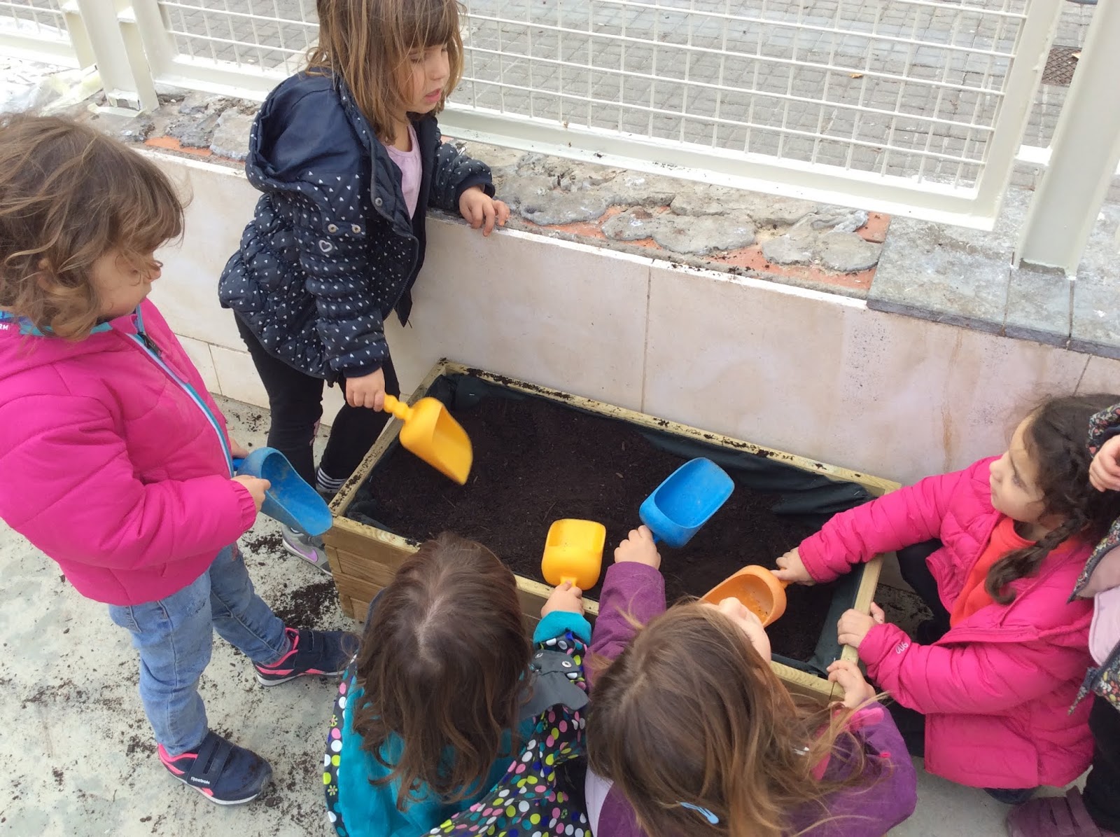 El primer pas ha estat omplir de terra tots els testos. Tot un treball d’equip! En uns hi han plantat flors i en d’altres llavors. Anirem veient el procés de creixement.