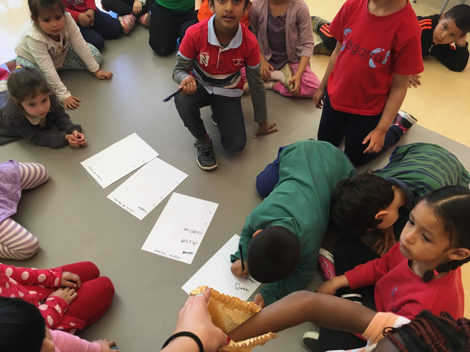 Després de triar de què podrien fer les cases i posar-les nom: caseta dolça, caseta de fruites, caseta salada i caseta de postre. Es van fer 4 grups i cadascú va triar-ne un.