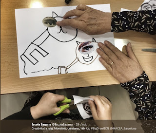 La primavera passada rebíem la notícia que érem convidats a organitzar un taller en l’edició 2018 de Big Draw, Barcelona Dibuixa. Organitzat des de fa anys pel Museu Picasso de la ciutat, en aquesta edició el festival Big Draw ampliava el seu horitzó i s’obria a tres museus més de la ciutat. D’aquesta manera, a més de la zona Picasso/Born es creaven les àrees MACBA, MNAC i Museu Blau.