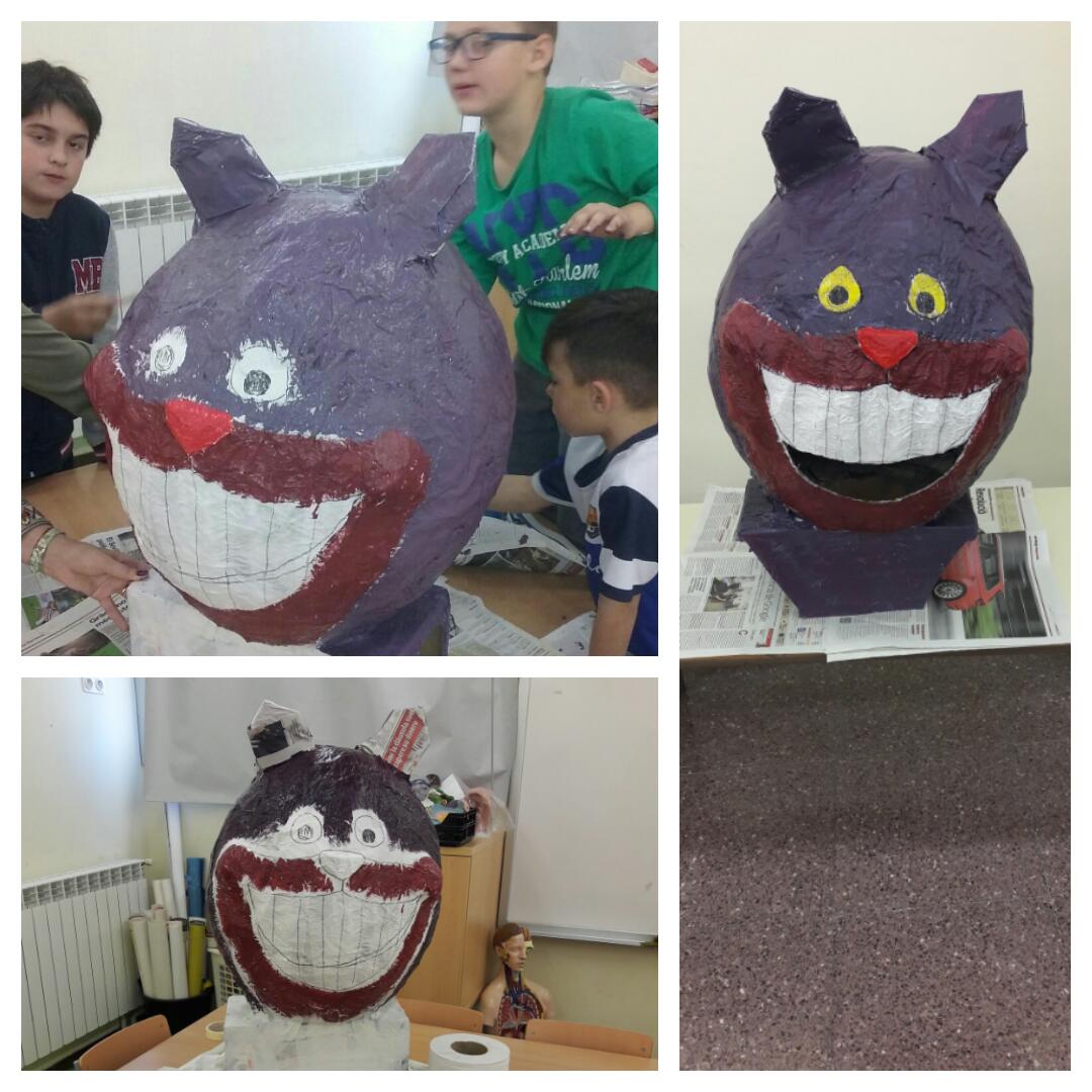 Continuant amb el projecte de l’Alícia en terra de meravelles de 3r i 4t amb les tutores Ariadna i Eva, a l’espai migdia han fet el gat Cheshire en capgròs… Què en penseu? S’ assembla? |