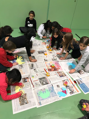 1r i 2n amb l’Andrea i l’Elena van decidir fer unes màscares, pintades amb pinzells i  amb els dits.