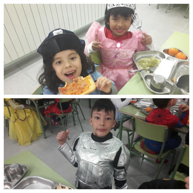 La pluja ens ha jugat una mala passada, però això no ha impedit fer la festa i xerinola, això sí repartits, infantil per una banda, 1r, 2n, 3r i 4t a l’aula de ciències i els grans a les seves classes.