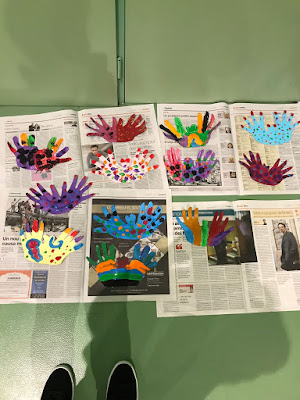 1r i 2n amb l’Andrea i l’Elena van decidir fer unes màscares, pintades amb pinzells i  amb els dits.