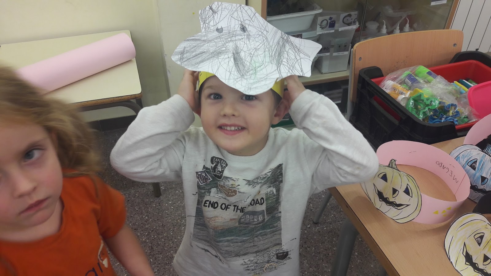 P4 amb la MÀngels han començat a fer unes corones amb cartolina xulíssimes, hem descobert grans artistes!