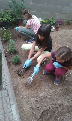 La Noa, la Lucía, la Kateryna, la Jana i la Maya avui continuaven amb la seva bona feina a l’hort.