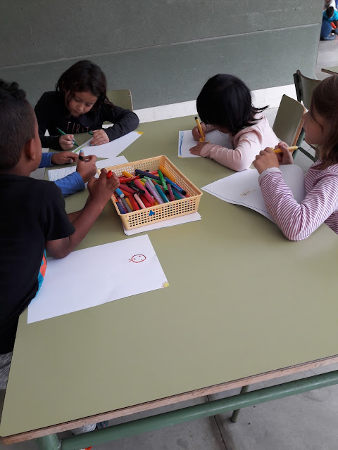 Hem començat amb els murals de LA TARDOR, aquí l’Ilias, l’Andrea, la Vanesa, la Noa, en Mario i la Samara fent l’arbre de la tardor amb pintures i rotllos de paper…