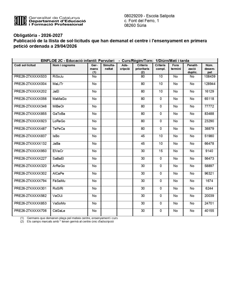 PREINSCRIPCIÓ: LLISTAT RESOLTES LES RECLAMACIONS