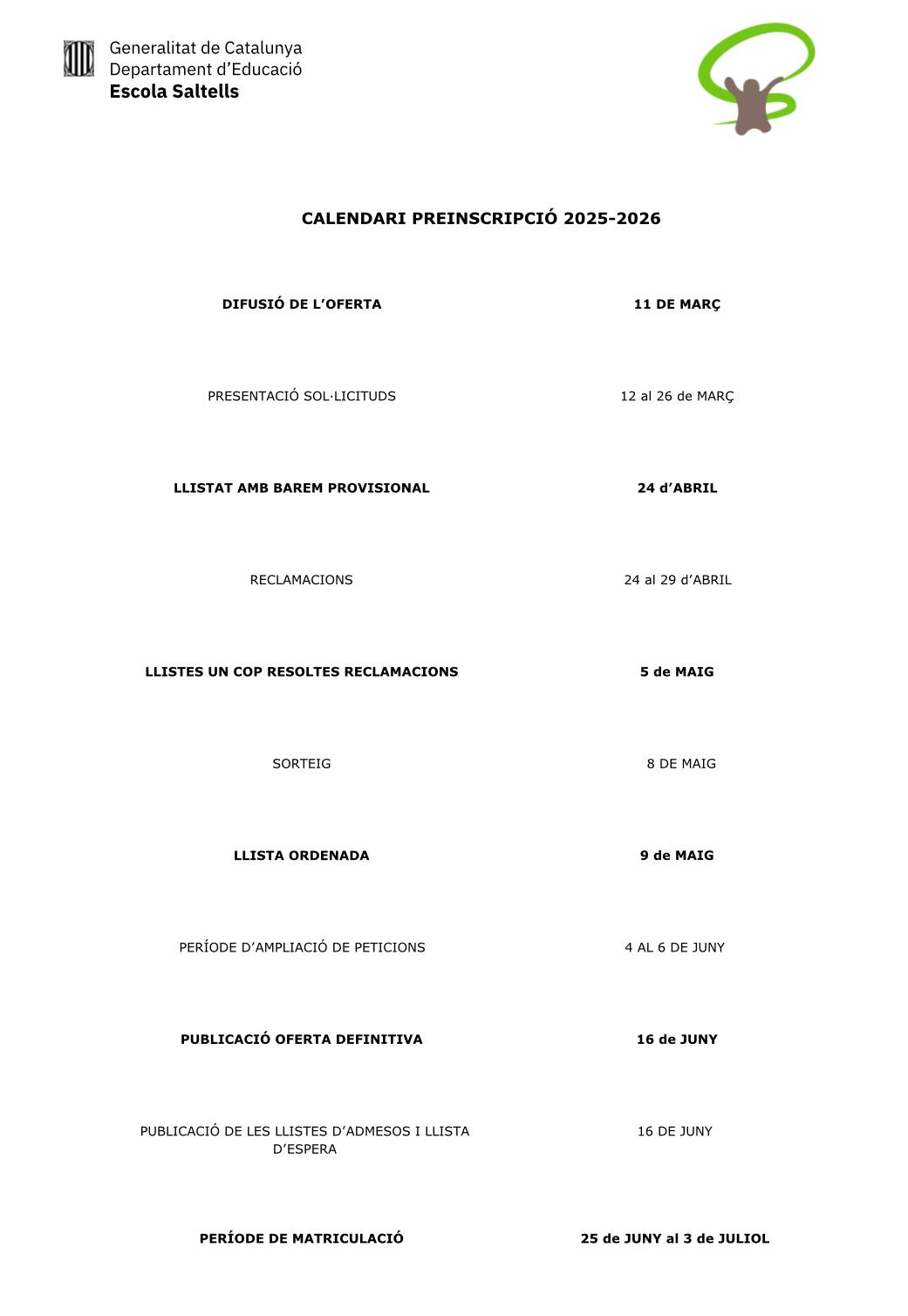 11/05/23Calendari de preinscripció i matrícula