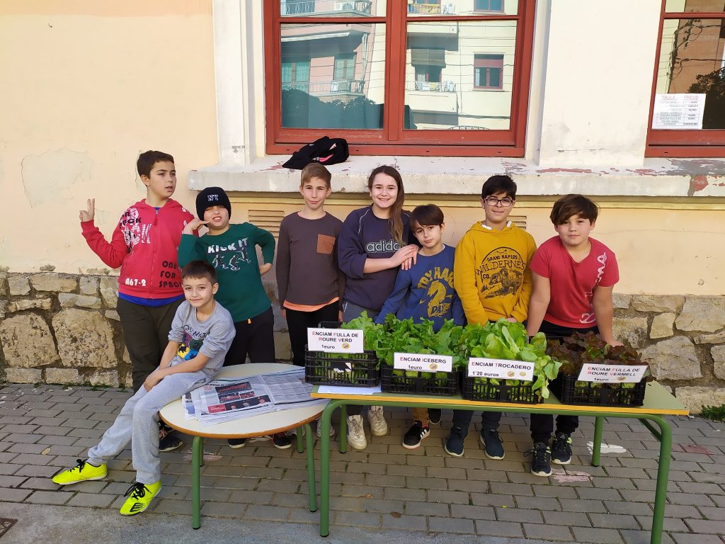 Després d’un acurat procés, avui els nois i noies de 5è han posat a la venda diferents tipus d’enciams que han recollit de l’hort de l’escola.