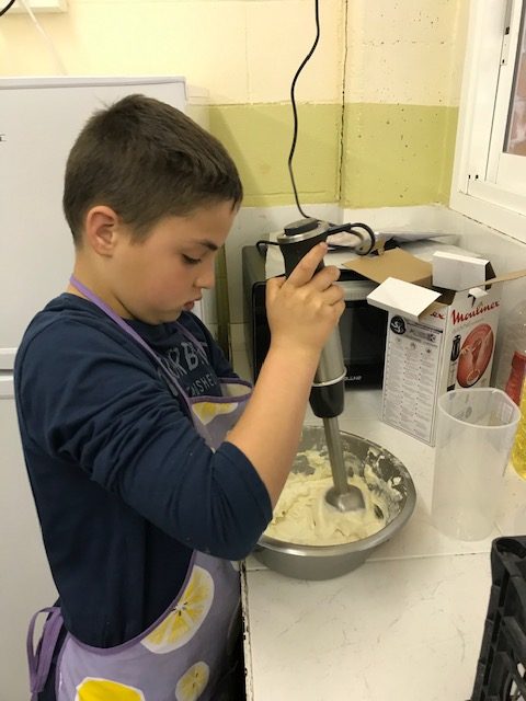 Avui els i la chef han fet un pastís de xocolata blanca i formatge.