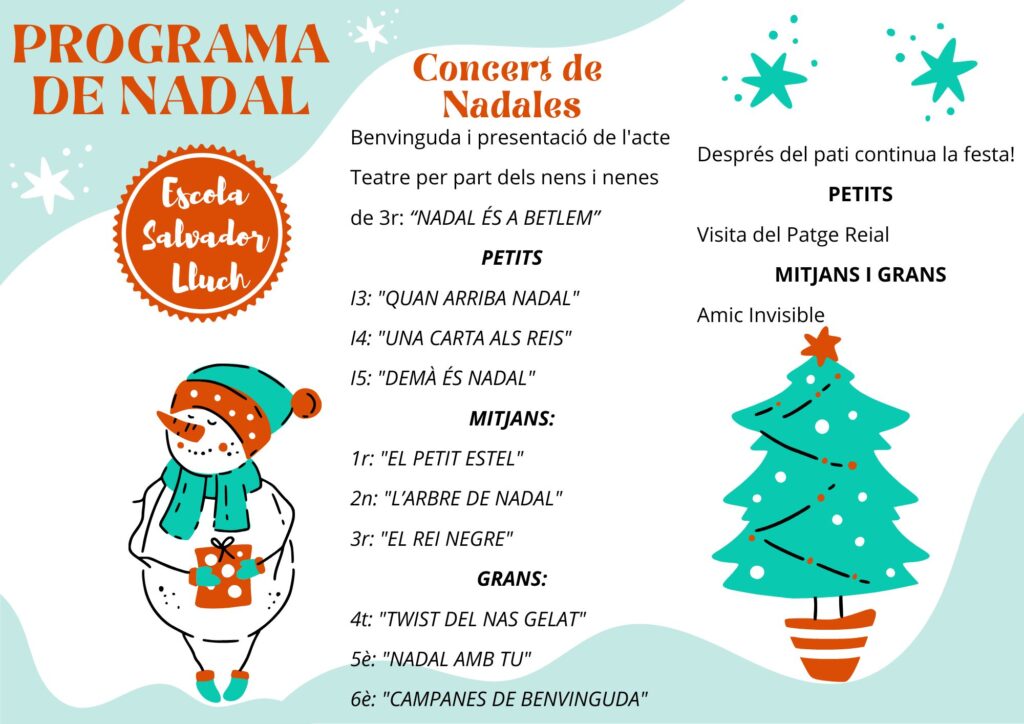 Aquí teniu el programa de les activitats que es faran a l’escola l’últim dia de trimestre per a celebrar la festa de Nadal.