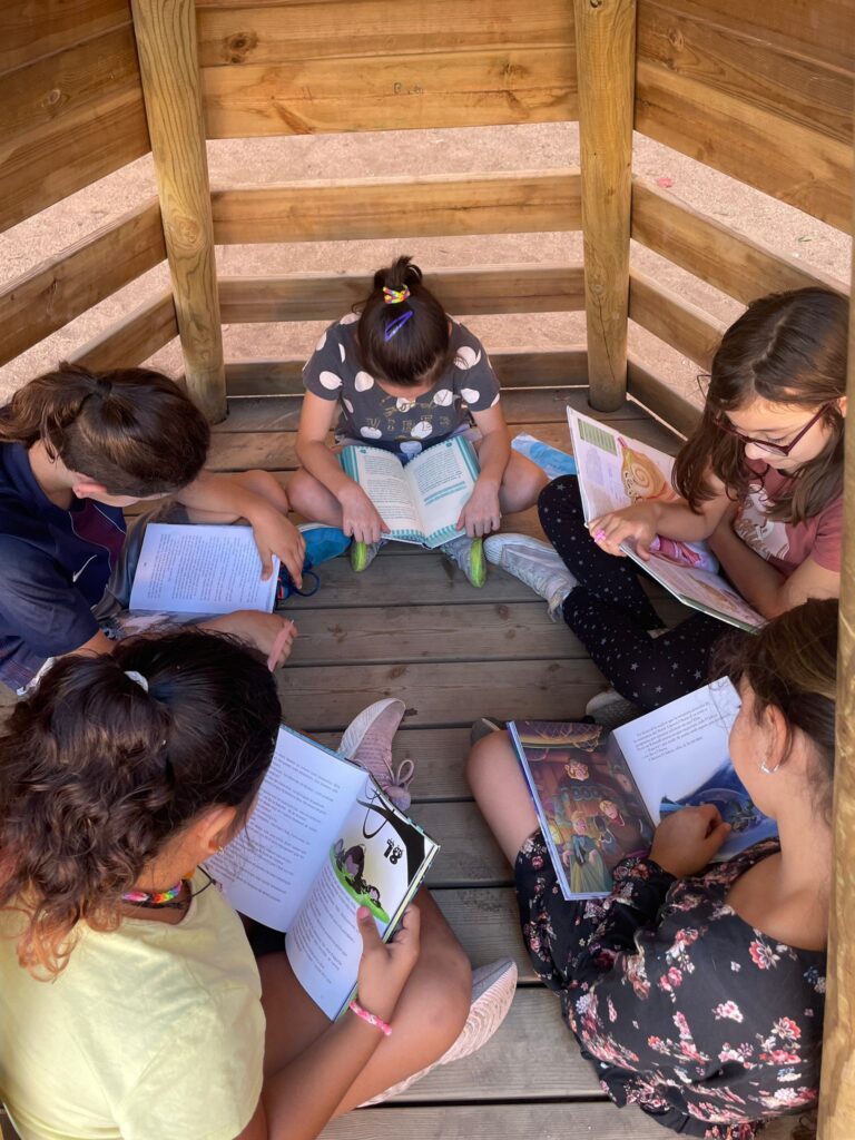 L’alumnat de quart aprofita aquesta bonança i la fresqueta del pati per a llegir