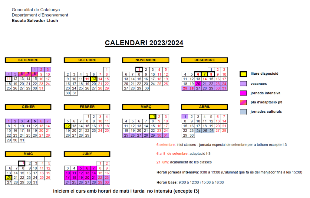 Ja tenim aquí el nou calendari per al curs 2023-24
