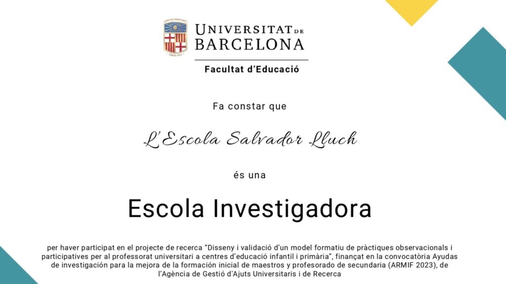 La nostra escola, com a escola formadora dels futurs mestres, ha rebut un títol