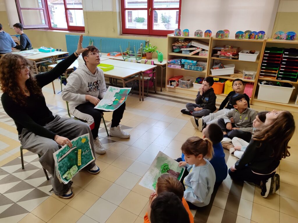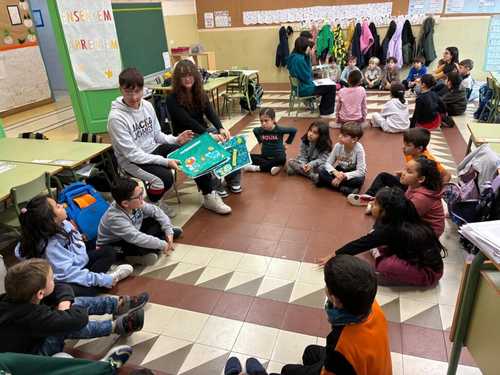 Avui un grup d’alumnes de 3r d’ESO de l’institut El Calamot han vingut a explicar-nos contes basats en les aventures de Phileas Fogg a “La volta al món en 80 dies” de Jules Verne. Les nenes i els nens de 1r i 2n hem gaudit dels contes que ens han explicat i ens ha agradat molt poder tocar les làmines que havien preparat amb diferents materials. Quina sort poder compartir experiències amb antics alumnes de l’escola i els seus nous companys i companyes de l’institut. Moltes gràcies per venir!