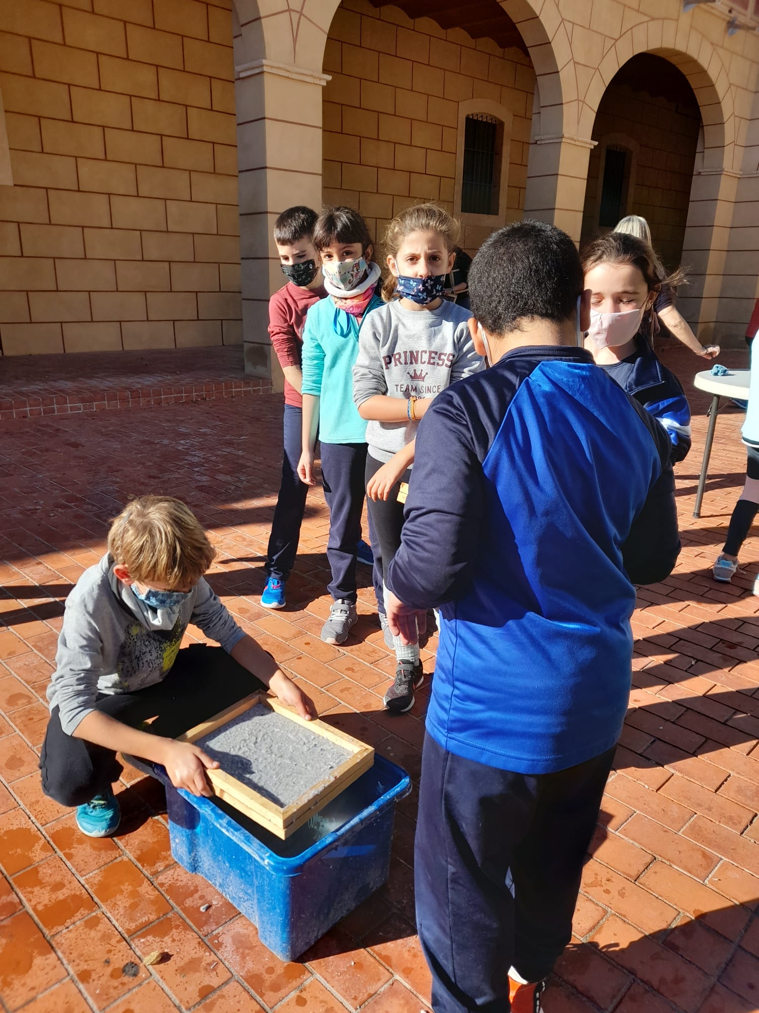 Després de sorprendre’s molt tot veient en volum i en pes quina és la quantitat de deixalles que per famÃlia i dia en generen a Gavà , els nois i noies s’han arremangat bé i han fabricat un nou paper a partir de restes de paper per reciclar.