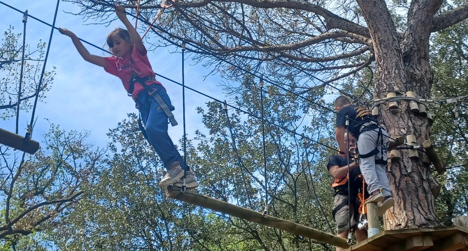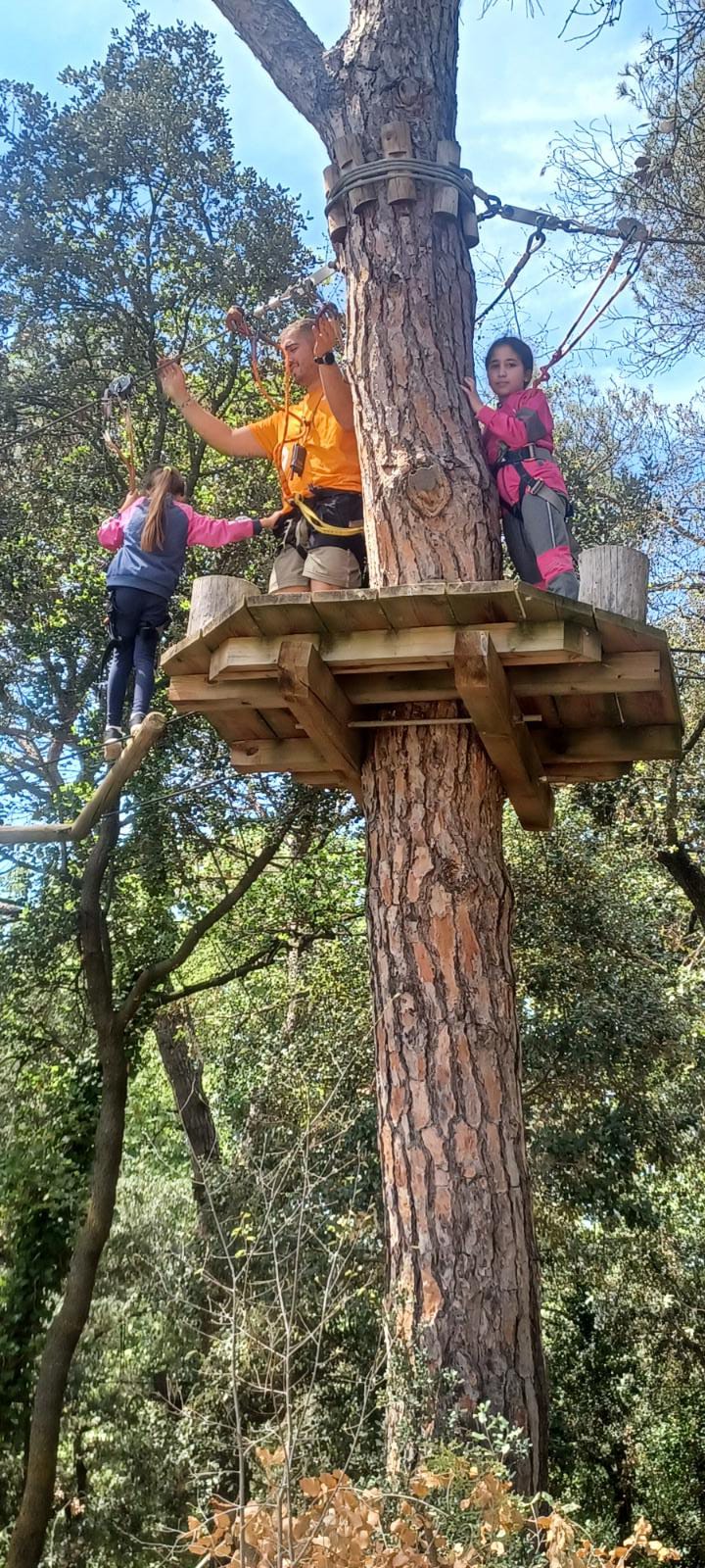 Allà van experimentar molt amb tirolines, escales enlairades, cordes… Utilitzant objectes de gran seguretat com l’arnès, el connector o el mussol.