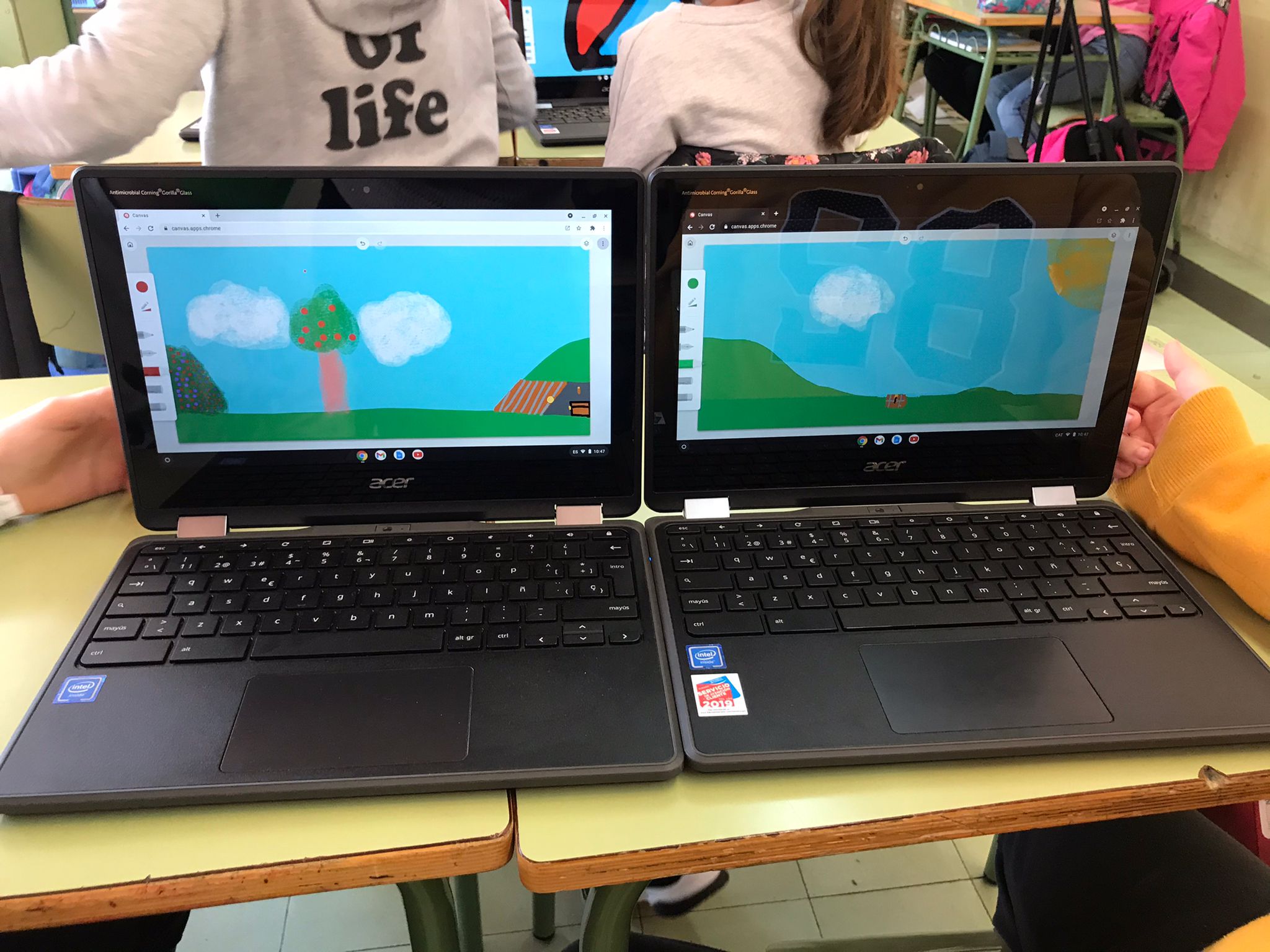 Els alumnes de 5è hem fet amb els chromebooks uns dibuixos col·laboratius ben originals.