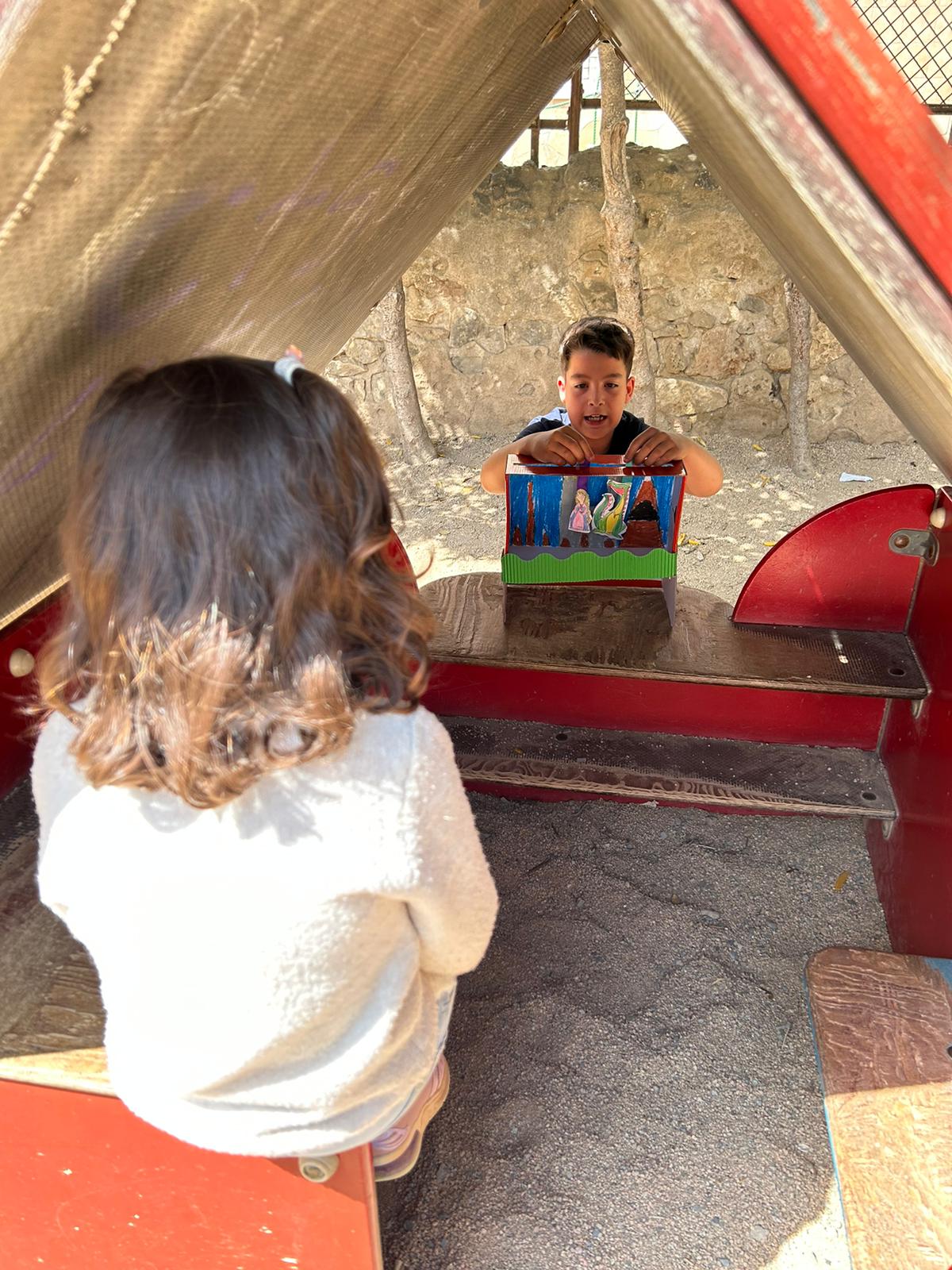 Hem explicat la llegenda de Sant Jordi als nostres companys petits. I ho hem fet amb un teatre que hem construït a classe!