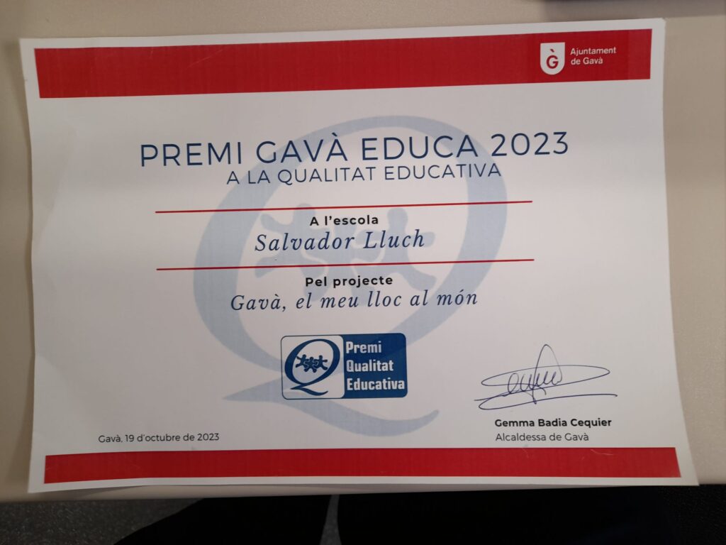 El nostre projecte educatiu, “Gavà, el meu lloc al món ,”ha estat guardonat amb el Premi Gavà Educa 2023 a la Qualitat Educativa.