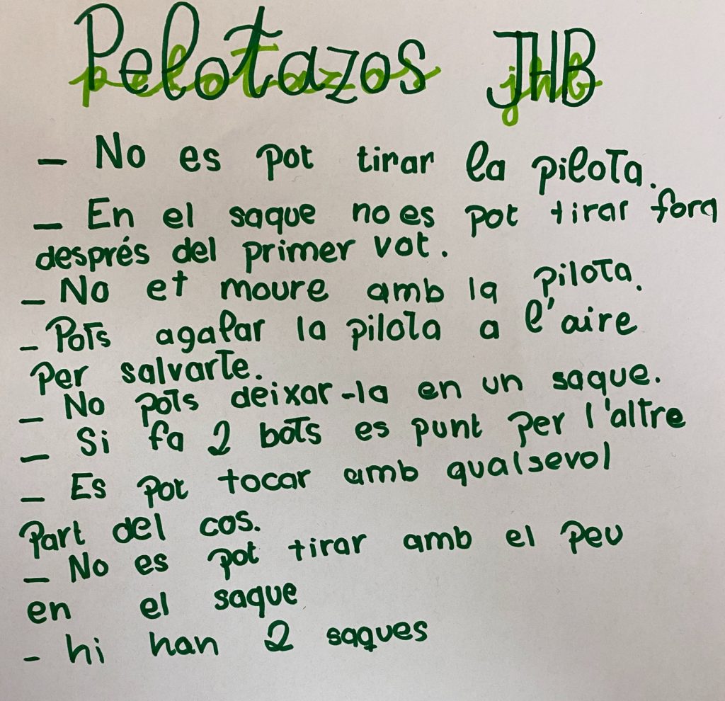 Els i les alumnes de 5è han creat el joc anomenat “Pelotazos JHB”, estan molt motivats i estan tant engrescats que juguen durant l’hora del pati i l’hora del menjador.