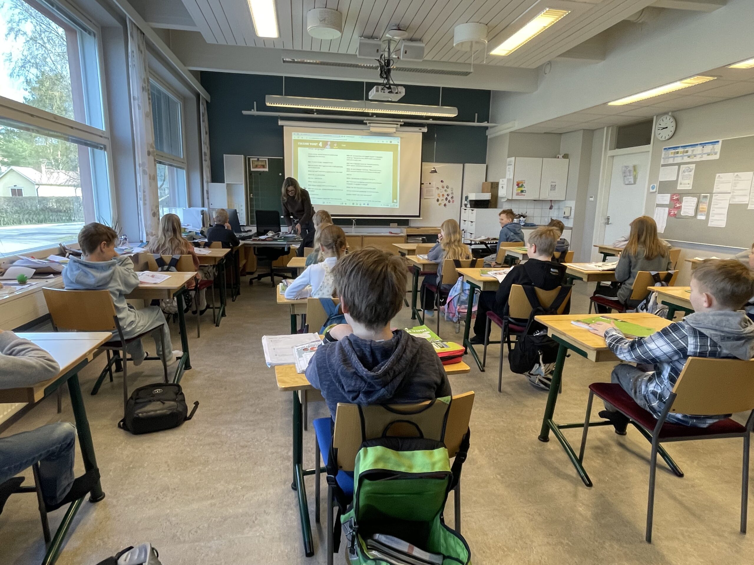 We also attended Swedish lessons in grade 2. The teacher read a story to the students while they gave each other back massages, creating a calm and relaxed atmosphere. They then worked on spelling using phonological awareness through a small game in which one student described a drawing, and the others guessed the words, classified them, and wrote them on the board to observe the spelling rule being practiced. Later, in groups of three, they discussed the homework they had done the previous day, corrected it together, and read aloud in small groups the same text they had already practiced at home, helping each other. In the final activity, each student chose a picture and invented and wrote a story about it. Those who finished practiced handwriting.