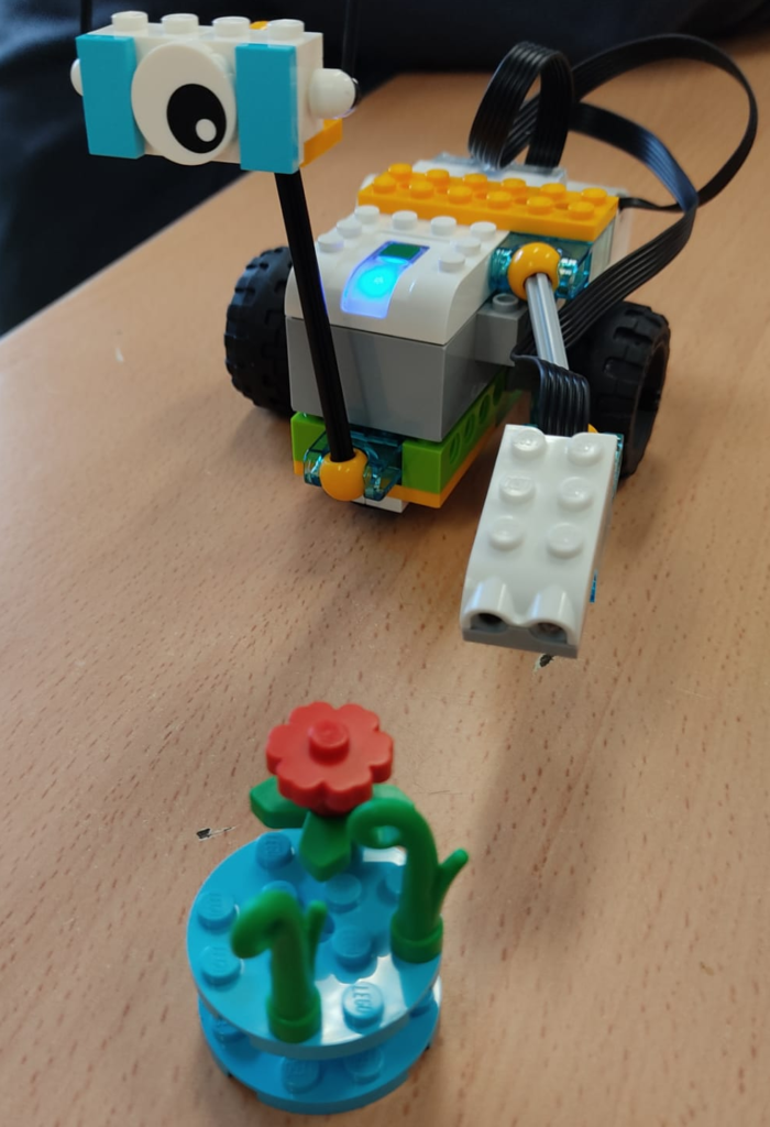 A l’àrea de Robòtica també estem desenvolupant reptes que tenen a veure amb l’univers. Amb l’ajuda de l’Esther, que cada setmana ens presenta un repte diferent, hem après què fan els científics quan no poden arribar als llocs que volen explorar. A través del projecte “Milo, el vehicle espacial” hem creat i programat a Milo, un vehicle espacial científic. Hem creat un braç amb un sensor detector d’objectes i l’hem programat per a que avanci i s’aturi quan trobi una nova espècie de planta.