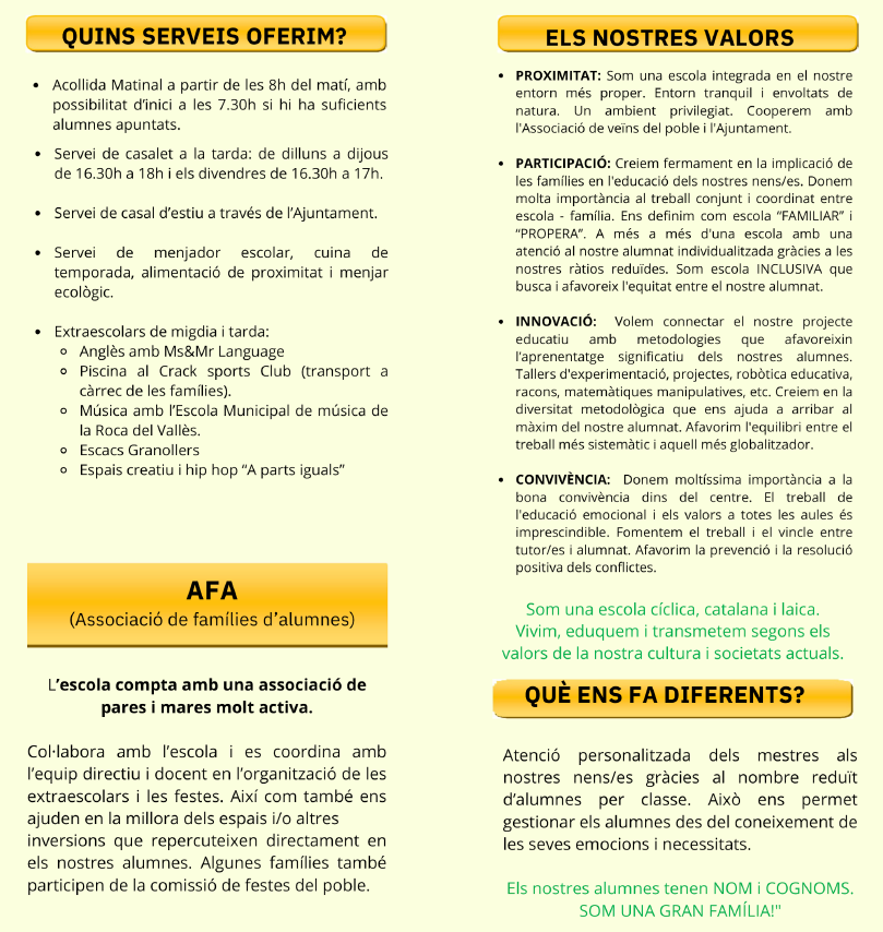 - Volem una escola oberta a la comunitat educativa i de referència per la cohesió del municipi.