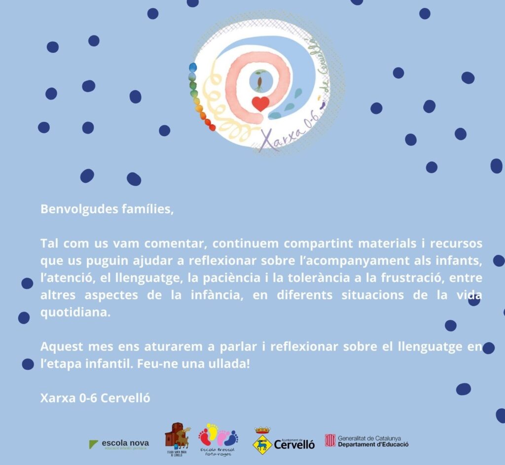 Els recursos i materials d’aquest mes de GENER van relacionats amb el llenguatge a l’etapa infantil, tan important en el desenvolupament dels infants (cliqueu sobre les icones):