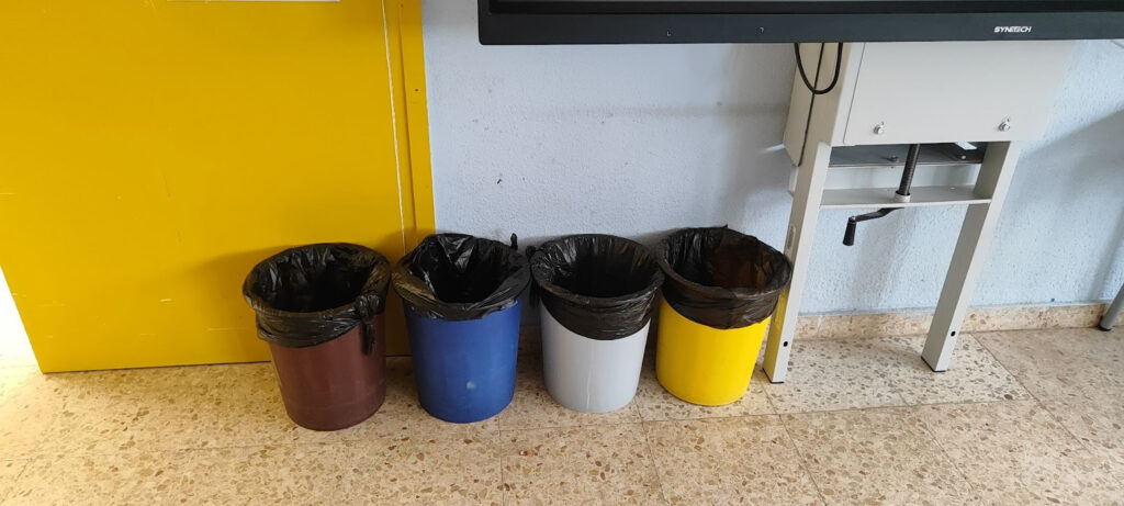 A la nostra escola, el reciclatge també forma part del dia a dia dins les aules. Cada classe disposa de quatre papereres diferents per facilitar una correcta separació dels residus: una de paper, una de plàstic, una de matèria orgànica i una de rebuig. D’aquesta manera, l’alumnat aprèn a identificar i separar els residus des de ben petits, incorporant aquest hàbit de manera natural.